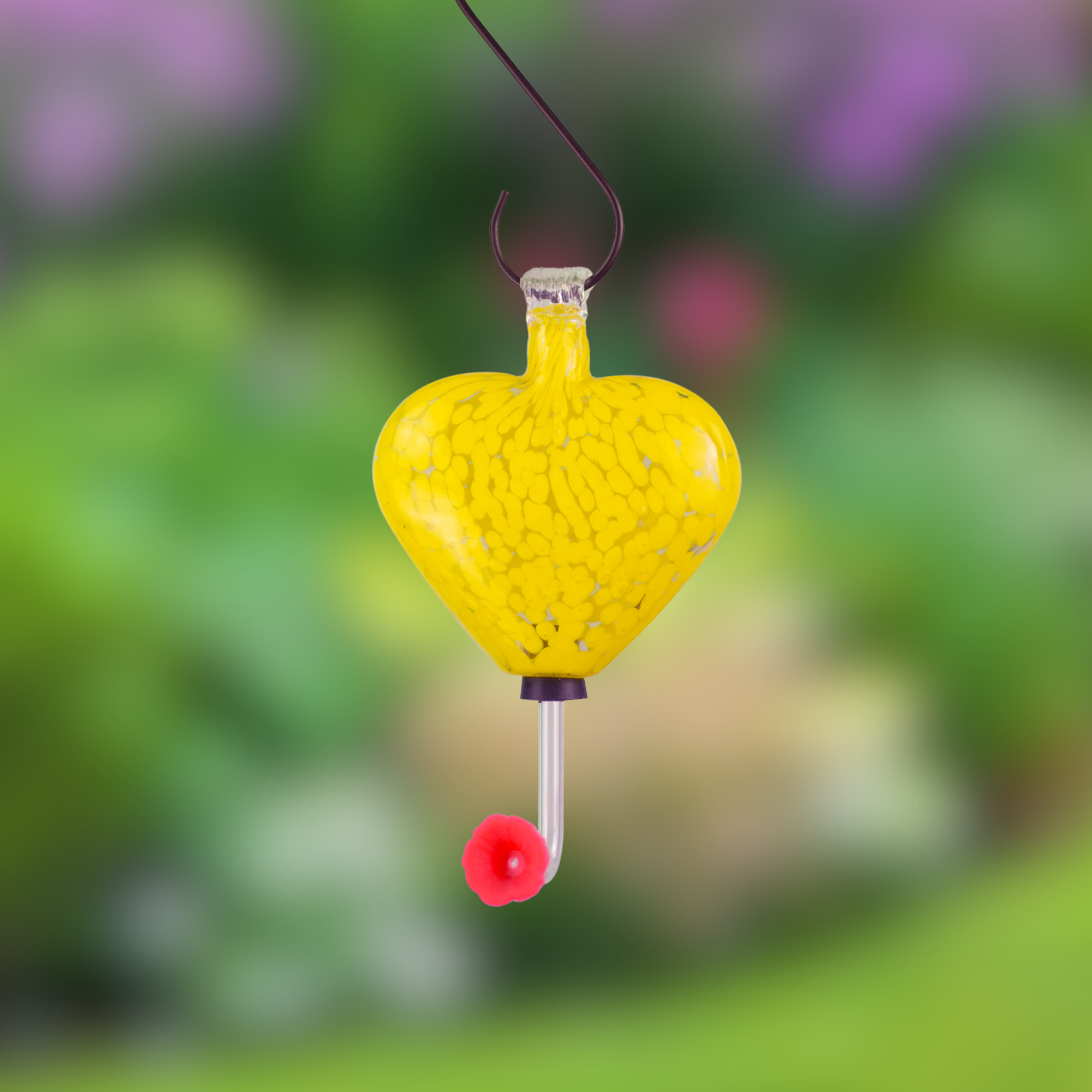 Yellow Glass Heart Hummingbird Feeder – 6 oz