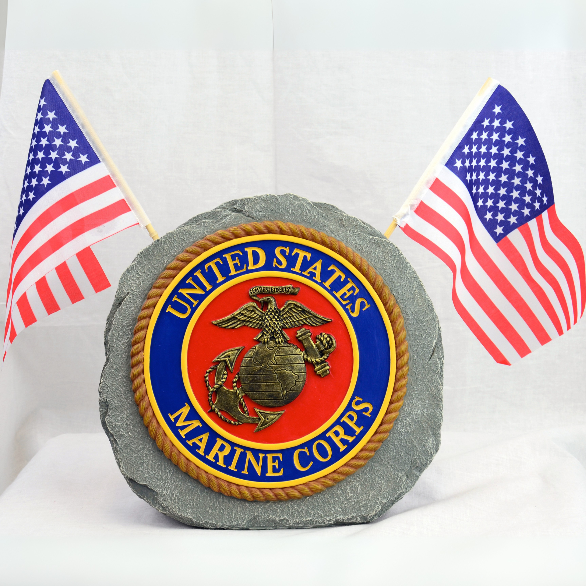 U.S. Marines Garden Stone with Flags – 10″