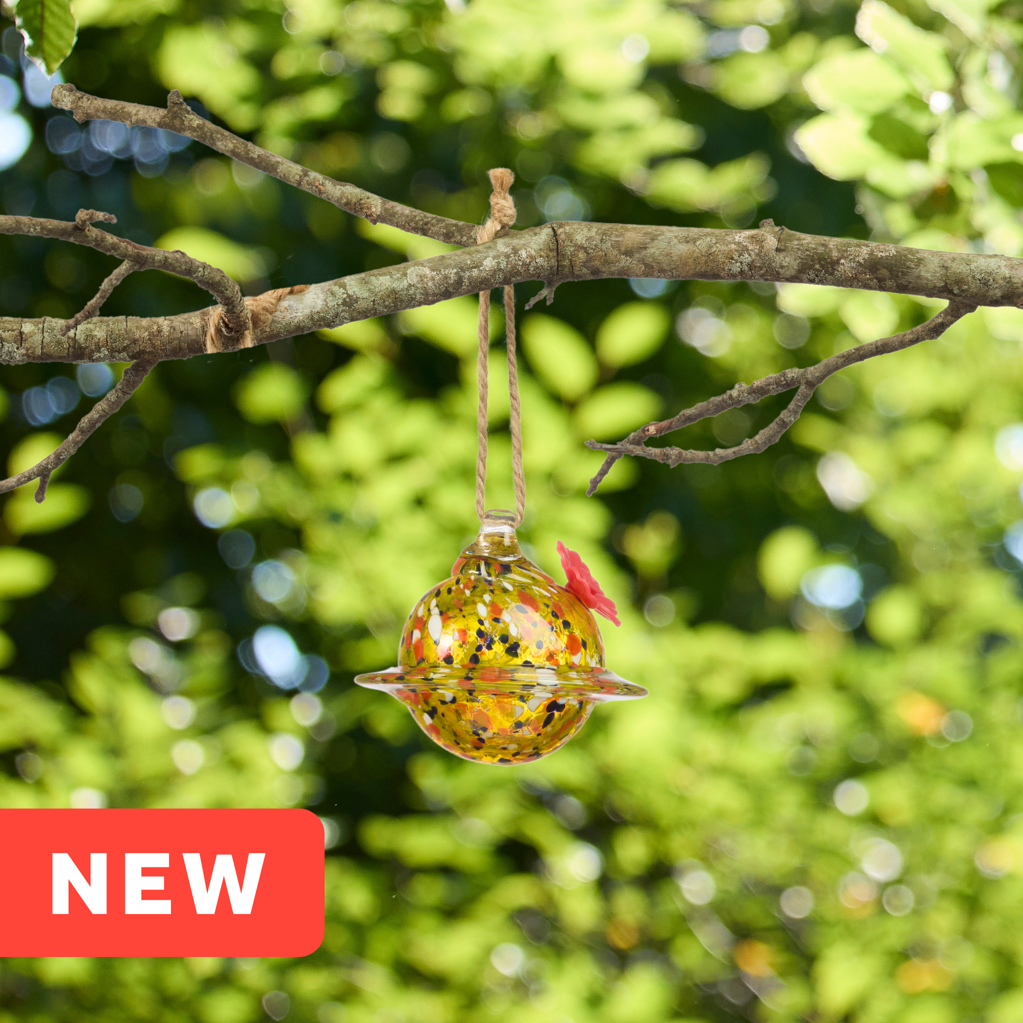 Yellow Planet Art Glass Hummingbird Feeder