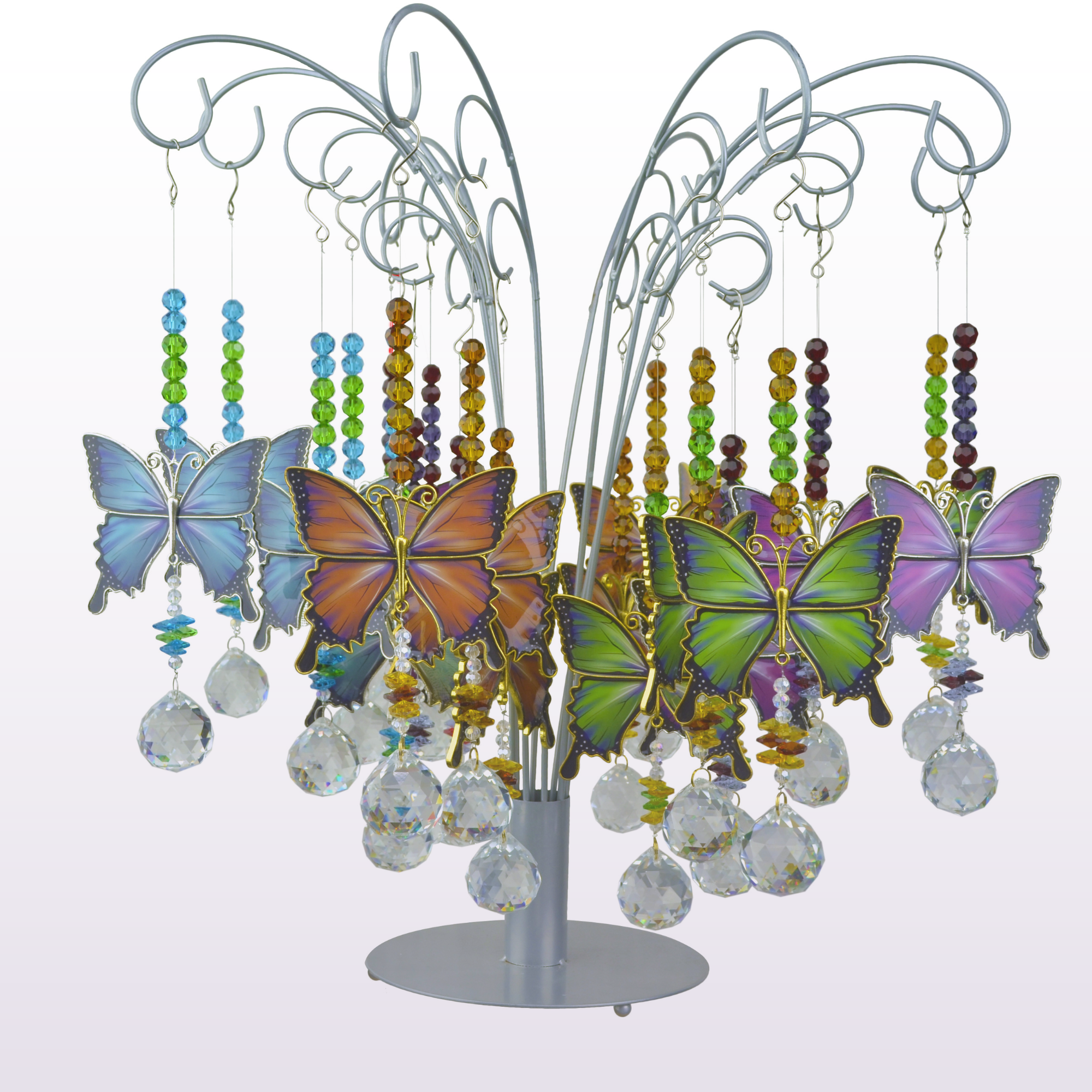 Assorted Butterfly Suncatcher Pendants w/ Display – 24pc