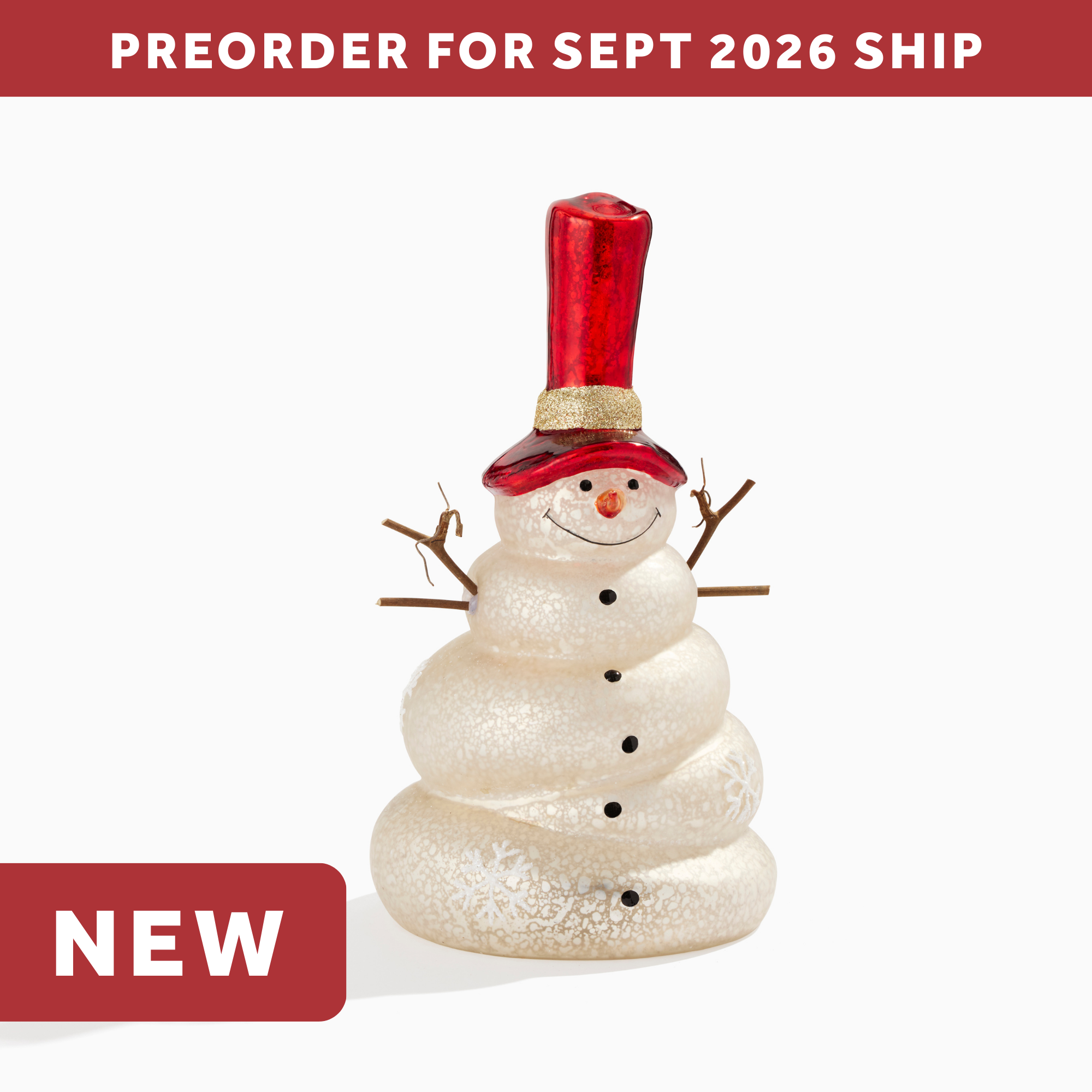 Mercury Glass LED Snowman w/Red Hat (Large)